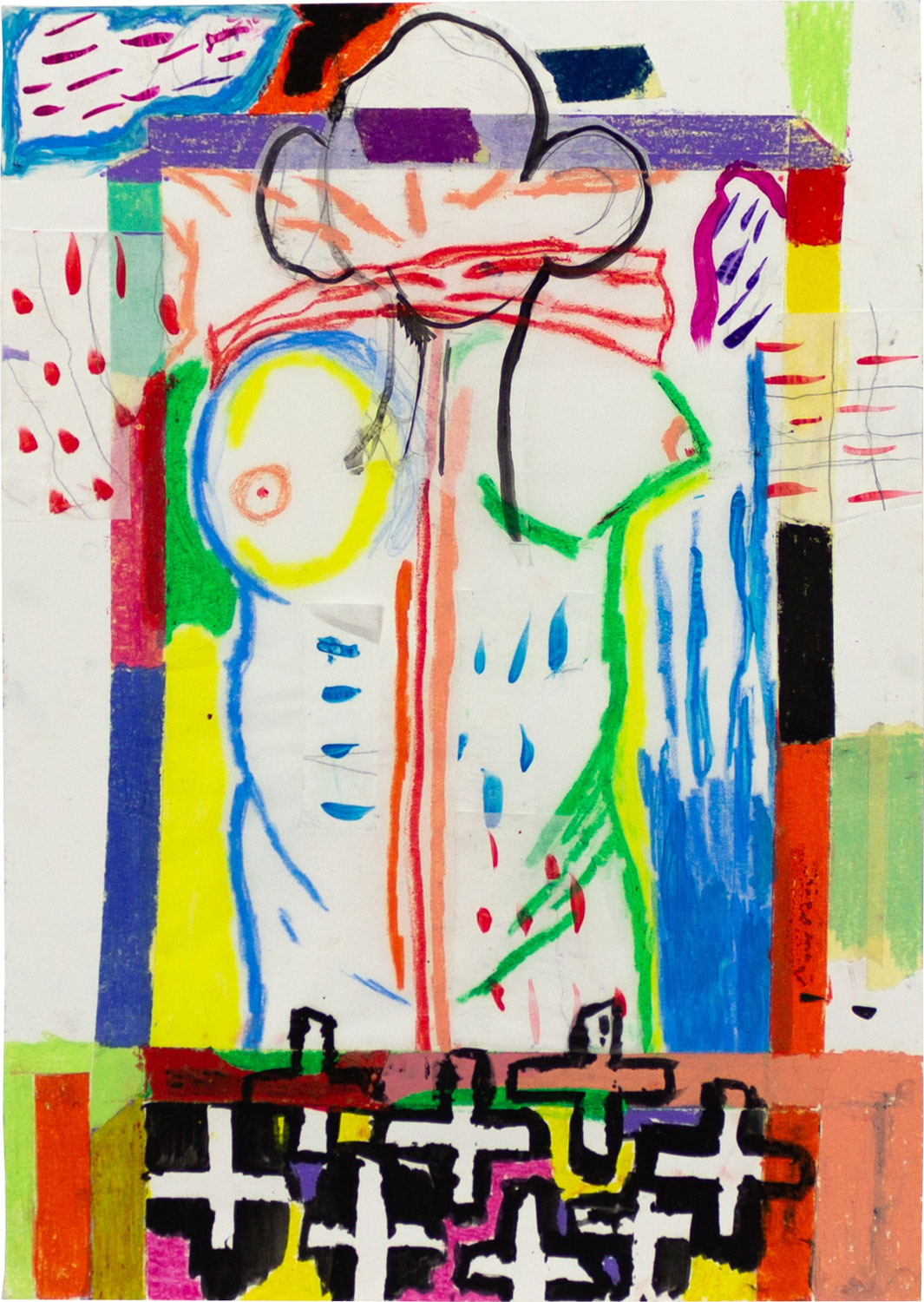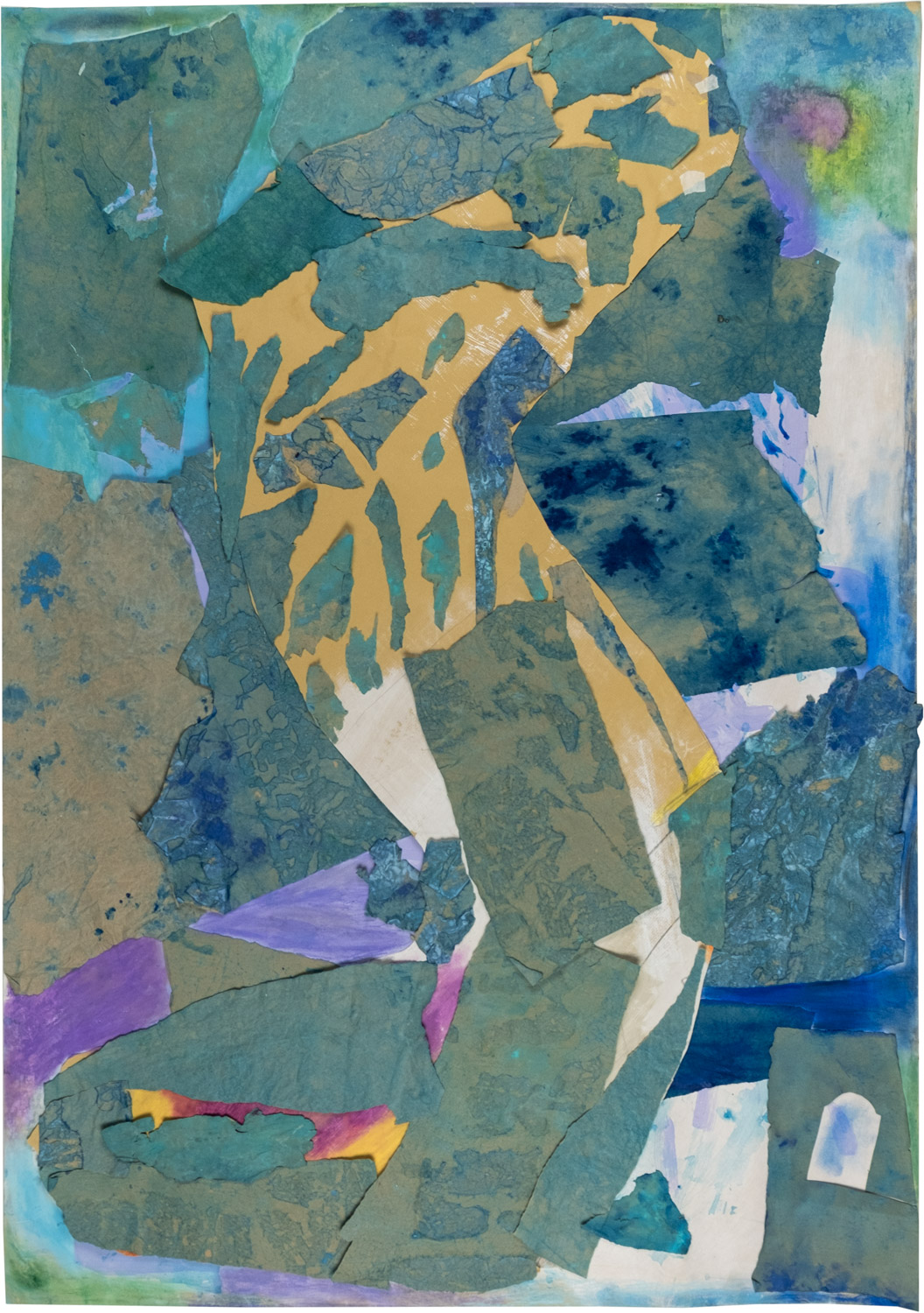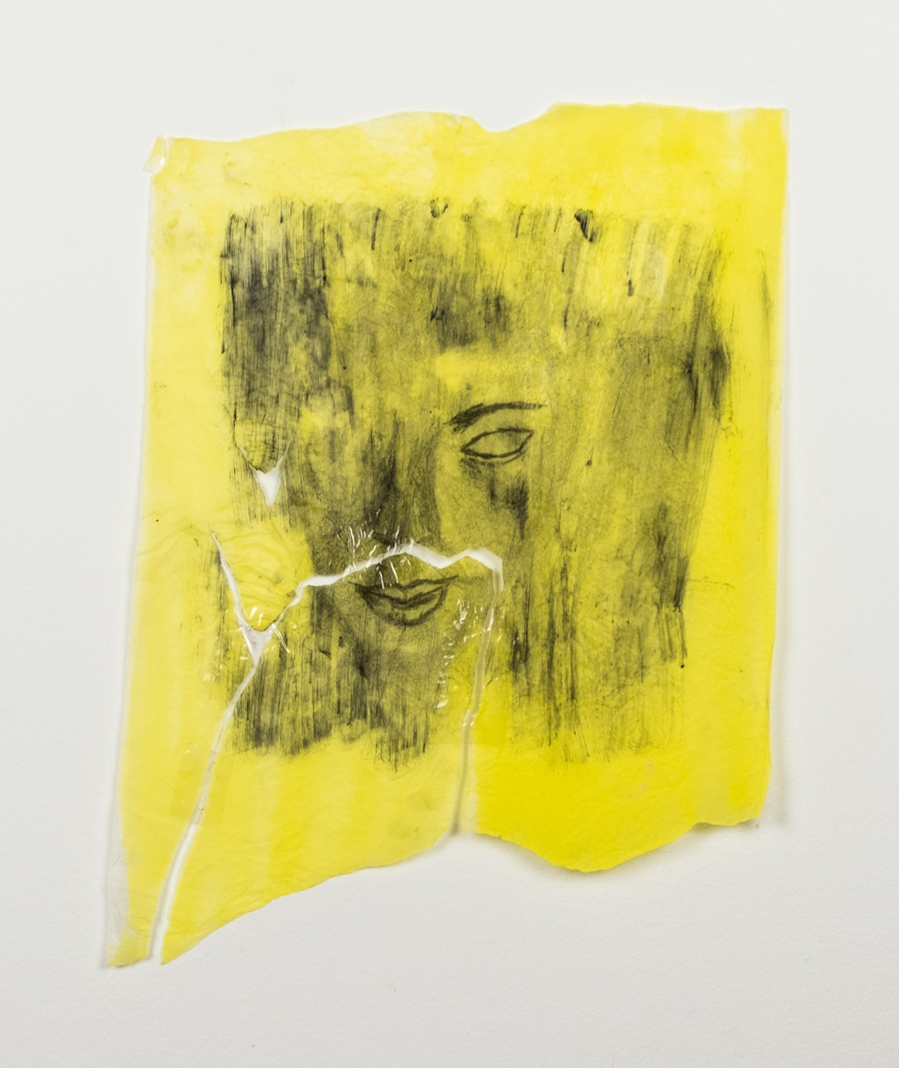 the artist shows a group of paintings and sculptures based on found objects, impressions of