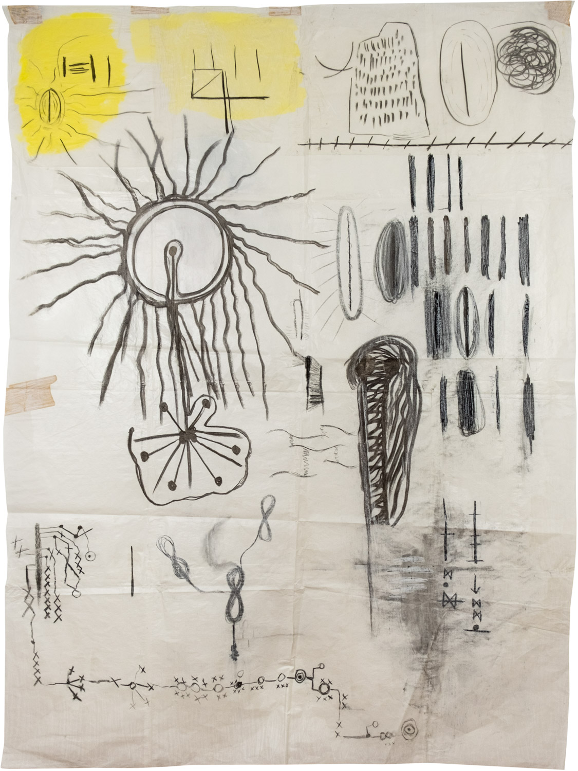 In an act of raising and approaching ritualistic processes and valuing a polyhedral perspective on the world outside of oneself, Elisabete Gonçalves has been developing a work that is expansive and largely undisciplined (outside the disciplinary framework that usually organizes the so-called 'Fine Arts'). The generative energy that fuels her immense production is largely grounded in her experience, in her life, and is crossed by a hyper-sensory perception that is established from the experience of the body. The recovery of ancestral gestures, the discovery of new forms from universal symbols and signs, and the permeability of natural and organic materials mark the vast cosmology of objects she has been producing.